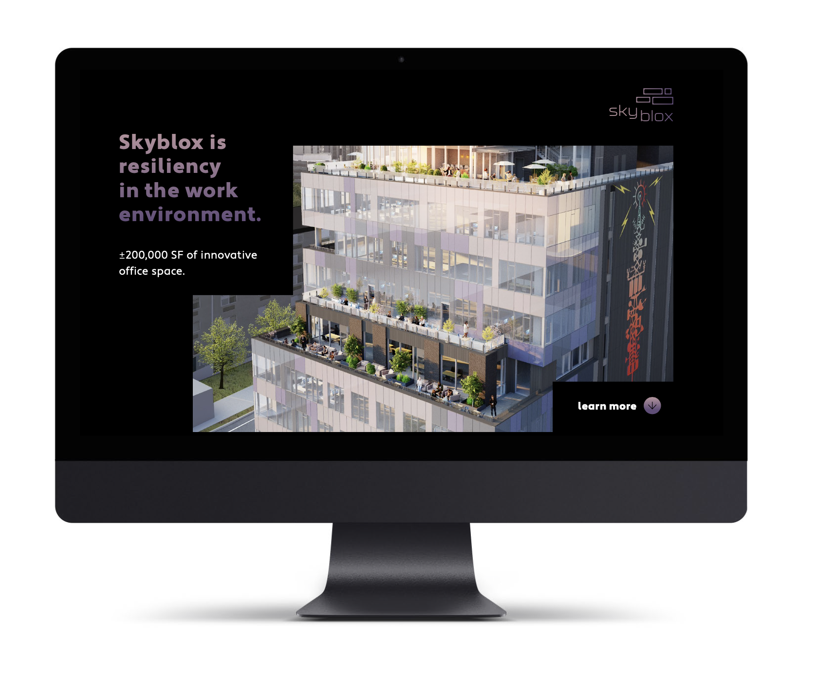 Brand creation and website development for a new commercial office building in Seattle’s South Lake Union neighborhood. The architecture and building materials heavily influenced the logo and design elements; for example, the electrochromatic glazing that makes up the windows is represented by the color-changing gradient on the web landing page.